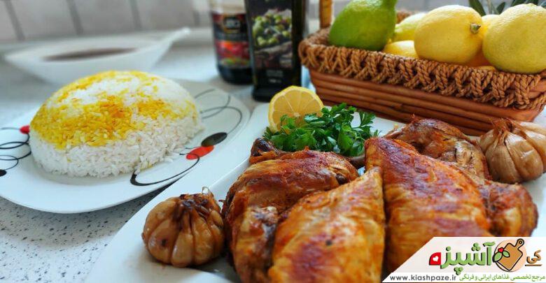 . اکبر جوجه آماده شده را در ظرف می گذاریم و با پلو زعفرانی و سس رب انار که آماده کردیم نوش جان کنید.