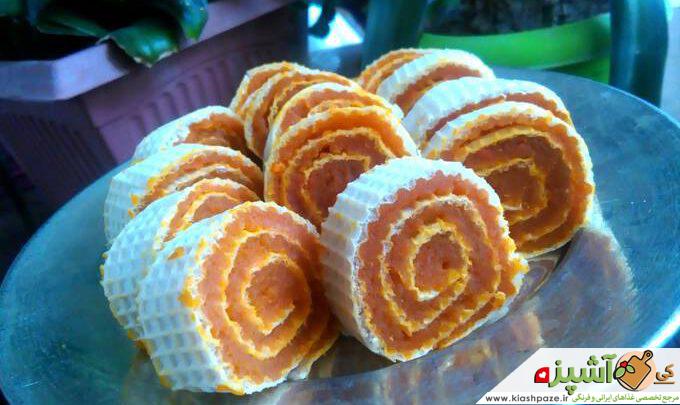زیر شعله را کم کرده و مواد را کم کم هم زده تا مواد در کف تابه جمع شود. حالا می توانید، حلوا را در مقداری نان حصیری بریزید و سرو نمایید. شما می توانید، نان ها را به شکل های مختلفی بزنید و بعد مقداری از حلوا درون آن بریزید. برای روی این حلوا نیز می توانید از مقداری پودر پسته و پودرهای دیگر استفاده کنید. داشتن این حلوا برای پذیرایی در مهمانی و مجالس بسیار مناسب هستند.