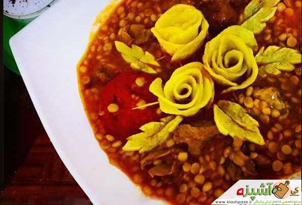 آن گاه لپه را شسته و به بقیه مواد می افزاییم.