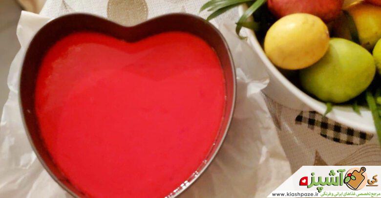 . قالبی که درون یخچال گذاشته بودید را بیرون بیاورید، سپس پودر ژلاتین خود را داخل یک چهارم لیوان آب جوش بریزید و به صورت کامل هم بزنید تا کامل مخلوط بشوند،. پنیری که در اختیار دارید را داخل هم زن بریزید و بعد از آن وانیل، شکر و خامه رو به آن اضافه کنید و با هم زن آن ها را ۲ دقیقه هم بزنید. سپس ژلاتینی که آماده کرده بودید را بیاورید و با آن ها به صورت کامل مخلوط کنید (اگر احساس کردید مایع شل شده من پودر ژله درون خوده مایع ریختم )و سپس مخلوطی که درست کرده اید را بر روی قالب بریزید و آن را داخل یخچال بگذارید و بعد از یک ساعت آن را بیرون بیاورید.