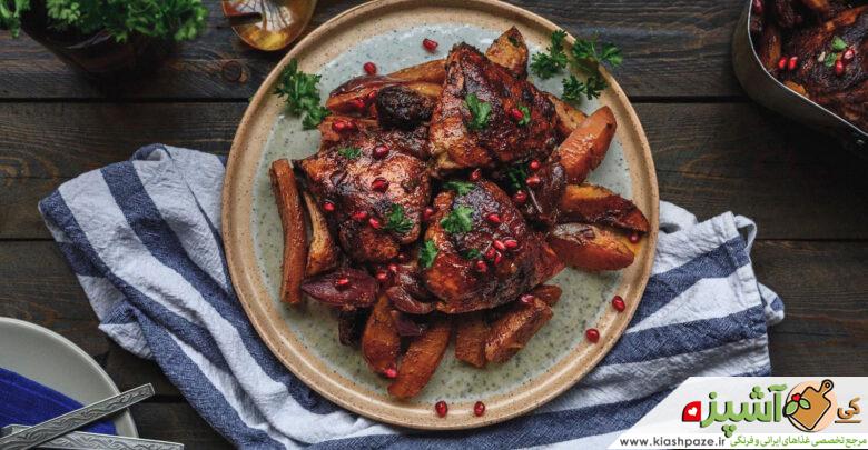 در ادامه فر را با دمای ۲۰۰ درجه روشن می کنیم و اجازه می دهیم به خوبی گرم شود. حالا ظرف حاوی گوشت مرغ را در فر قرار می دهیم تا به طور کامل بپزد. حدود ۴۵ دقیقه تا یک ساعت و نیم در فرهای مختلف ممکن زمان ببرد.