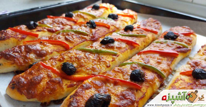 خمیر پیراشکی را پف شو گرفته روی تخته آرد بریزید خمیر را کمی ورز داده به اندازه یک نارنگی خمیر ها را اماده کنید دونه دونه خمیر را باز کرده وسط خمیر مقداری از مایع گوشت ریخته بعد پنیر رنده شده روی مواد بریزید دو طرف خمیر را بسته توی سینه فر را کاغذ روغنی پهن کرده خمیرها را آماده کنید بعد روی خمیر سس گوجه زده فلفل ها را باریک برش زده روی خمیر بچینید بعد پنیر رنده شده روش ریخته وزیتون سیاه هم برای تزیین گذاشته فر را از قبل روی دمای ۲۰۰ بمدت ۲۰ تا ۲۵ دقیقه وقتی روش طلایی شده پیراشکی شما آمادست ..