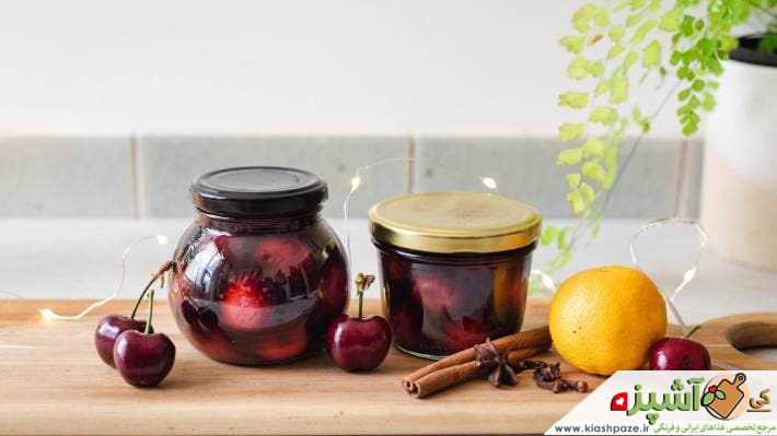 محتویات قابلمه را داخل شیشهای دردار ریخته و درب آن را سفت ببندید. شیشه را به طور کامل برگردانید تا همه حبابهای هوا خالی شود. شیشه را در جایی تاریک و خنک به مدت ۲ هفته نگهداری کنید سپس آن را مصرف کنید. محتوایت داخل شیشه بسته به نوع گیلاس تیره یا روشن میماند، گیلاسها به مرور چروک میشوند و تا حدودی شبیه کشمش میشوند.