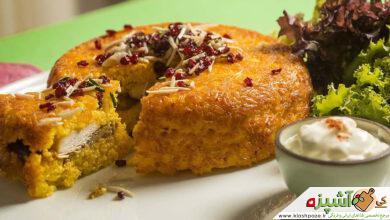 ته چین گوجه فرنگی مواد لازم: برنج ۷۵۰ گرم (۵ پیمانه) کره ۶۰ گرم سینه مرغ پخته شدهخلالی خرد کرده…