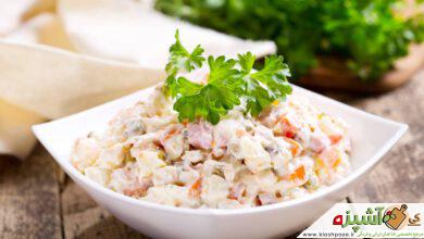 مواد لازم برای ۴ نفر ژامبون یا سینه مرغ ۲۰۰ گرم خیارشور ۱۰۰ گرم سیب زمینی ۲۵۰ گرم مغز گردو…
