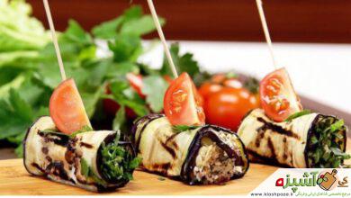 رول بادمجان با طعم ژامبون مواد لازم بادمجان متوسط ۳ عدد پنیر ریکوتا (یا خامهای) ۳۰۰ گرم ژامبون خرد شده…
